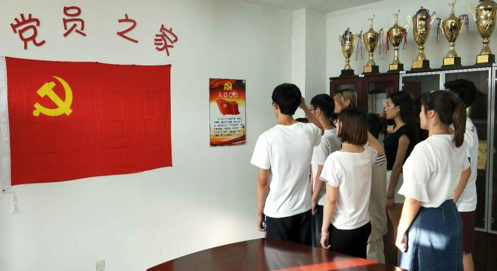 预备党员面对党旗进行入党宣誓,是发展党员工作的必经程序,是党组织对预备党员入党后进行的一次庄严而生动的党性观念教育,也是预备党员进行自我教育的良好形式。为加强对新入党同志的党纪党性教育,组织老党员回顾当年入党的初心和信念,主题党日活动的最后,党支部书记胡庆老师组织新党员集体宣誓、老党员重温入党誓词: